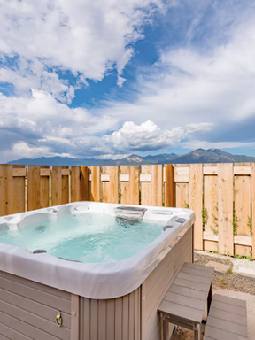 Welcome to The Steel Pueblo, a modern 1-bedroom Taos retreat with a private hot tub and mountain views. Enjoy fast Wi-Fi, streaming TV, and a cozy living space perfect for relaxing after exploring Taos. Unwind on the private porch, sip coffee at sunrise, or stargaze under the desert sky—your ideal Taos vacation rental for comfort and adventure.