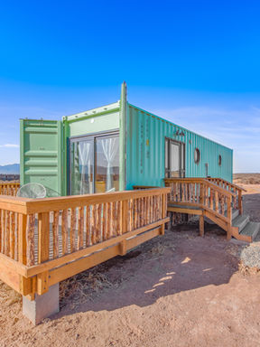Discover the Boho Boma, a modern 2-bedroom, 2-bath shipping container home near Taos Ski Valley. Just minutes from Taos Plaza, enjoy mountain views, starry skies, and a peaceful desert escape. This stylish Taos vacation rental offers full amenities, a private patio, and the perfect blend of comfort and Southwest charm.